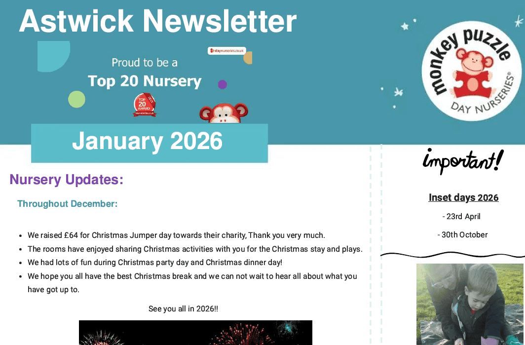 There is always something exciting happening at Monkey Puzzle Day Nursery Astwick. Come and find out about the latest news, learning and trips for our children.